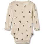 Søt langermet body med trykk i myk merinoulljersey – perfekt for kalde dager. Den har en komfortabel, normal passform og praktiske trykknapper ved skulder og skritt for enkel av- og påkledning.