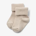 Wheat Ziggy rib sokker i ull til baby, off white